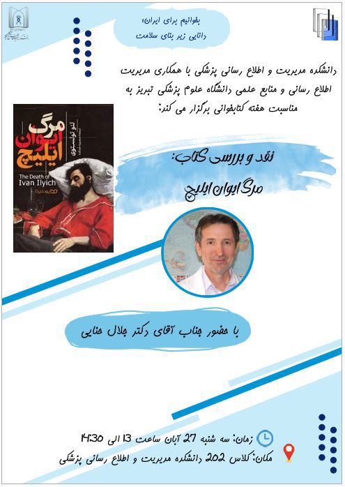 دانشکده مدیریت و اطلاع رسانی پزشکی با همکاری مدیریت اطلاع رسانی پزشکی و منابع علمی " جلسه نقد کتاب ایوان ایلیچ